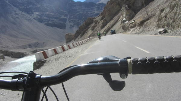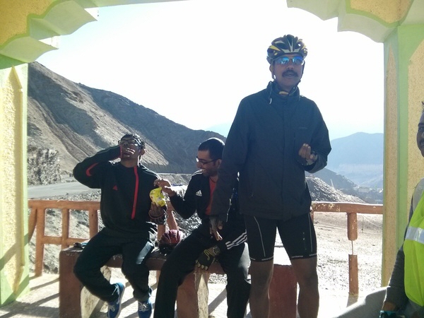 It’s uphill, but only slightly… what kills us is the wind - it’s blowing against us. The sun’s high up in the sky, making you sweat and the wind immediately blows it away. Not a bit of shade in sight. Freezing and sweating at the same time. Once we’re about halfway up, our waters over two. By this point about half of us are walking our bikes up. Saahil and I though, we’re cycling up about 300 meters, walking back, and taking someone else’s cycle up. Finally reach the Sikh gurudvara we’re supposed to have lunch at by 3. It was all downhill from there, but in a good way.